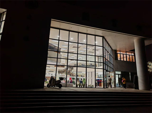 夜晚的图书馆。