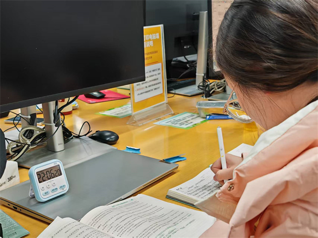 七个月备考,周玥说,常觉得自己像“在漆黑的屋子里洗衣服”。暑假连续两个月无法专注时,也崩溃过。但她还是告诉自己,心里再焦虑手上也不能停。不做精细到分钟的计划,就设定阶段目标,每天稳扎稳打学6~8小时。不被社交媒体上的节奏带偏,找到自己的步调最重要。