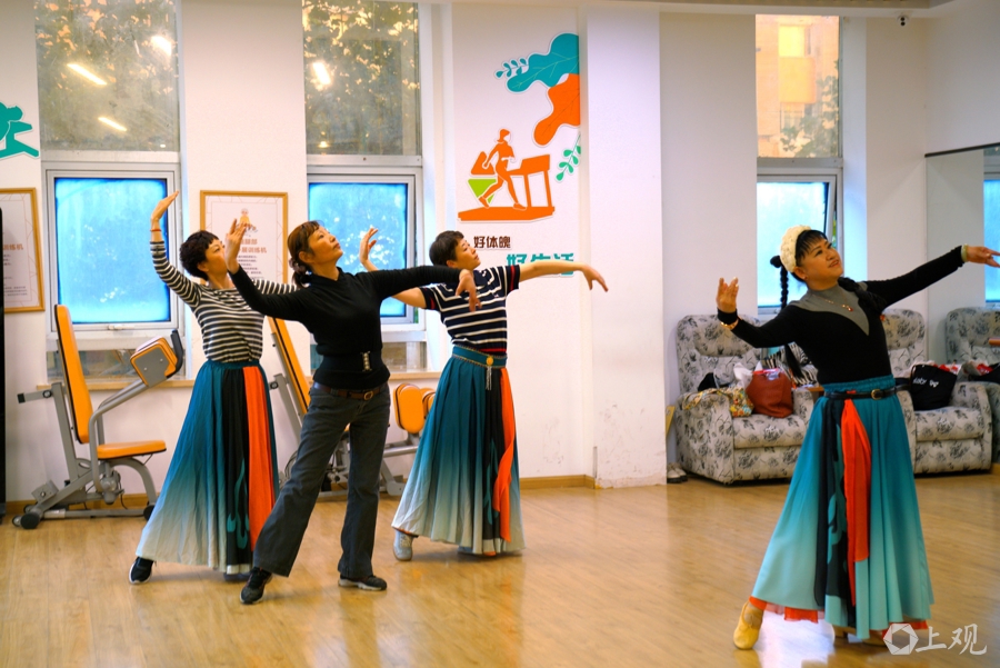 普陀区甘泉党群服务中心,老师带领同学们一起跳舞。(李相如摄)